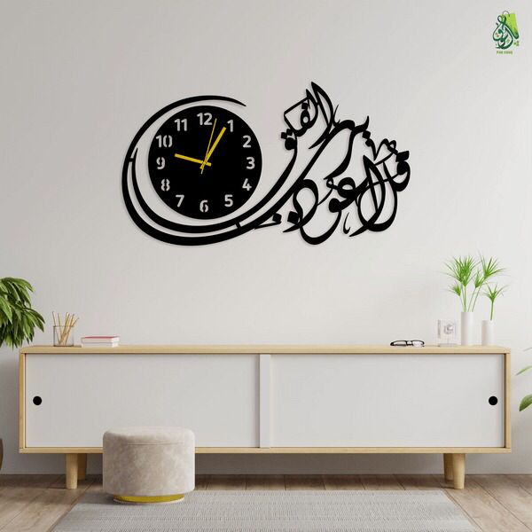 Bring timeless elegance and faith into your home with this stunning Qul Auzu Bi Rabbil Falaq Wooden Wall Clock.